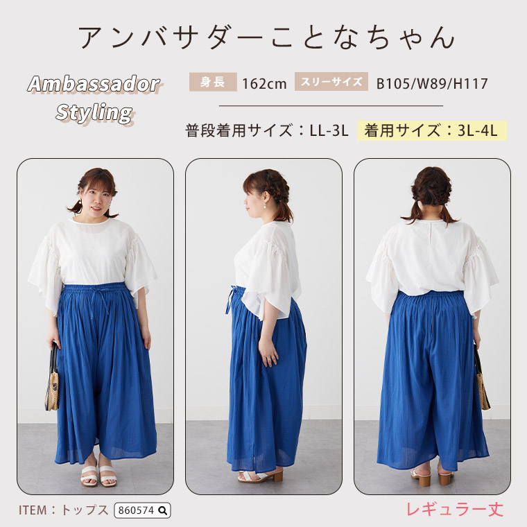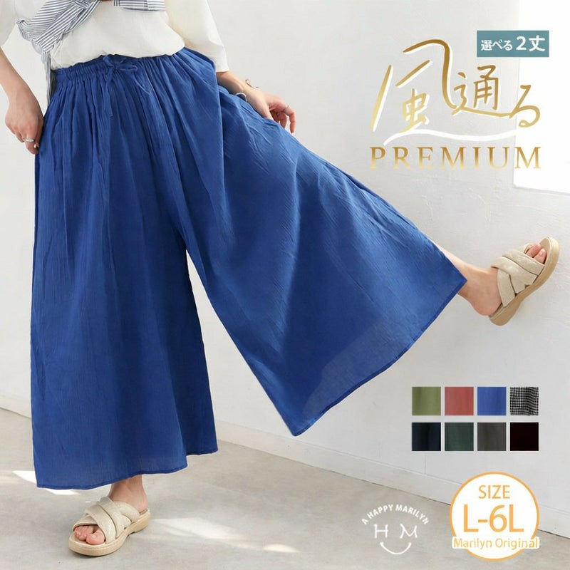 ボトムス ワイドパンツ ガウチョ LL 3L 4L 5L 6L 春 春物 春服 夏 夏物 夏服 ぽっちゃり ゆったり プラスサイズ 【風通るプレミアム】 2丈展開 綿 楊柳 ギャザー フレア スカンツ 【ウェストゴム】 | 大きいサイズの通販ならハッピーマリリン