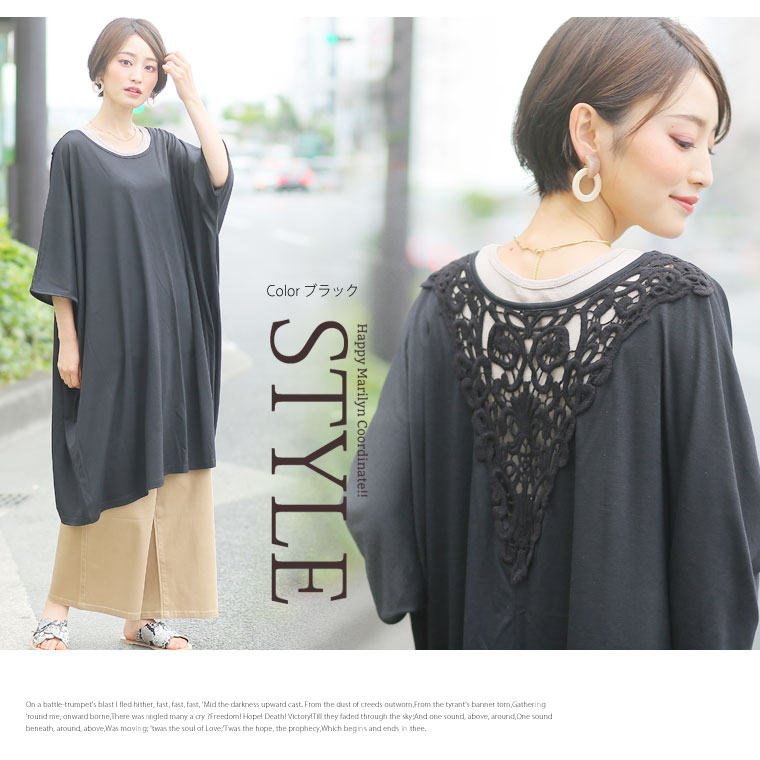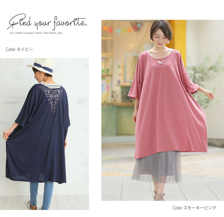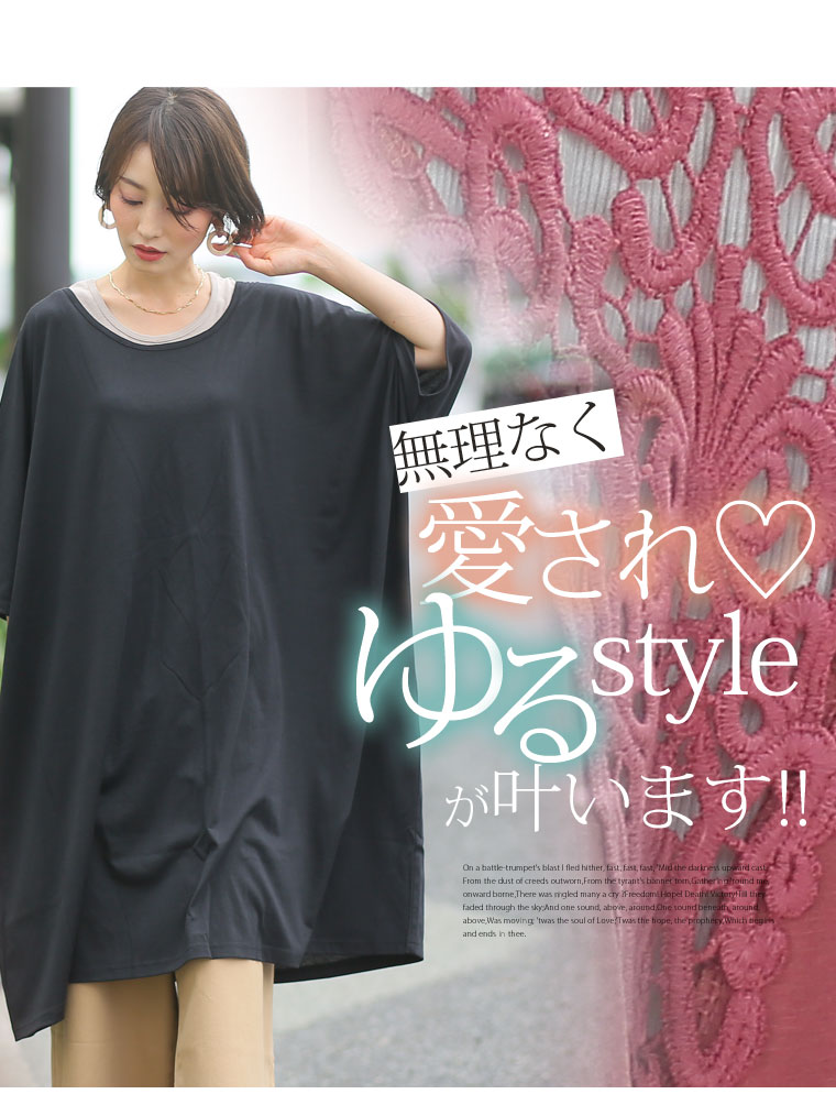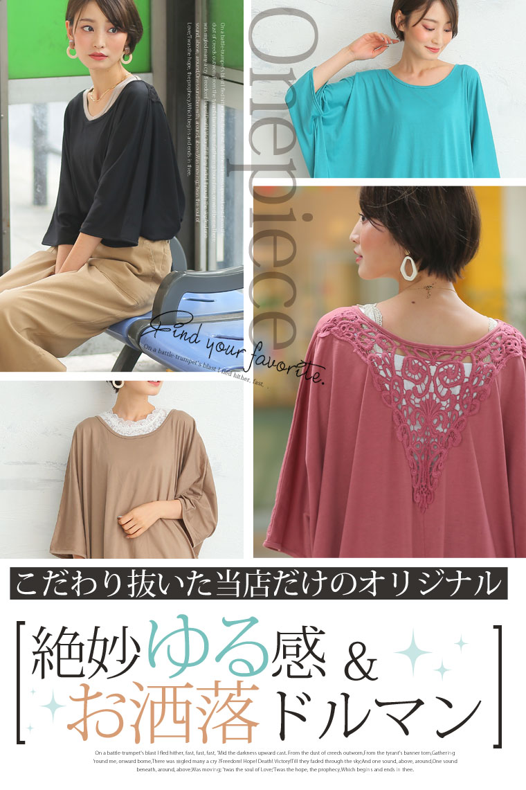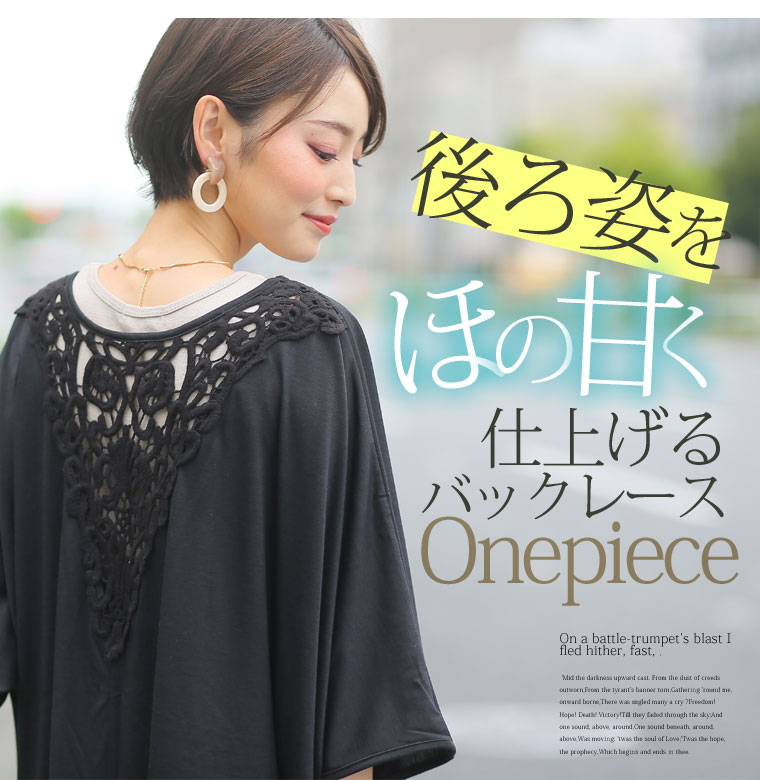 ゆったりサイズで体型カバー◎バックレースが繊細なドルマンワンピース