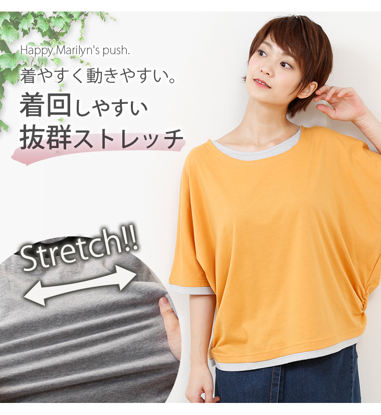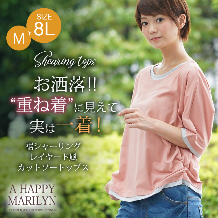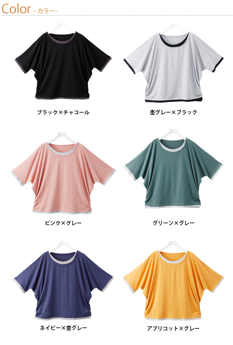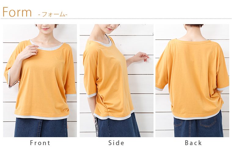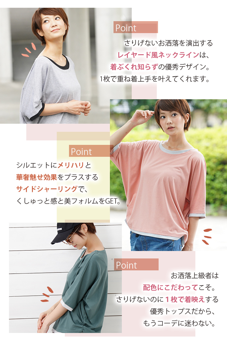 裾シャーリングでシルエットにメリハリをプラス。レイヤード風カットソートップス