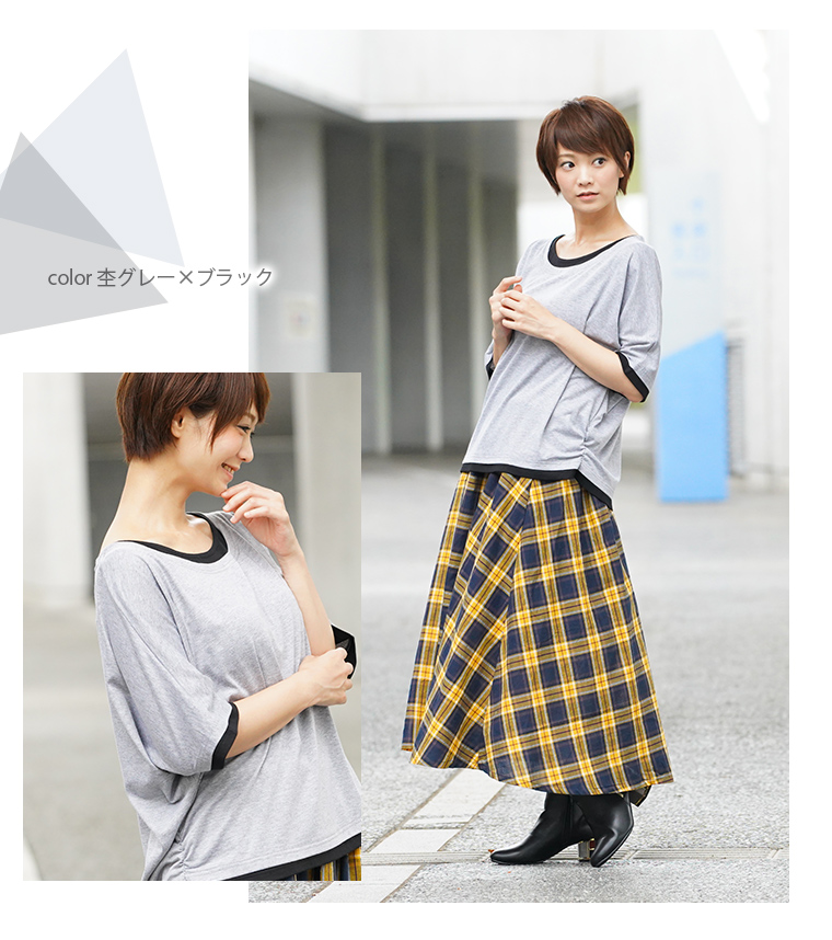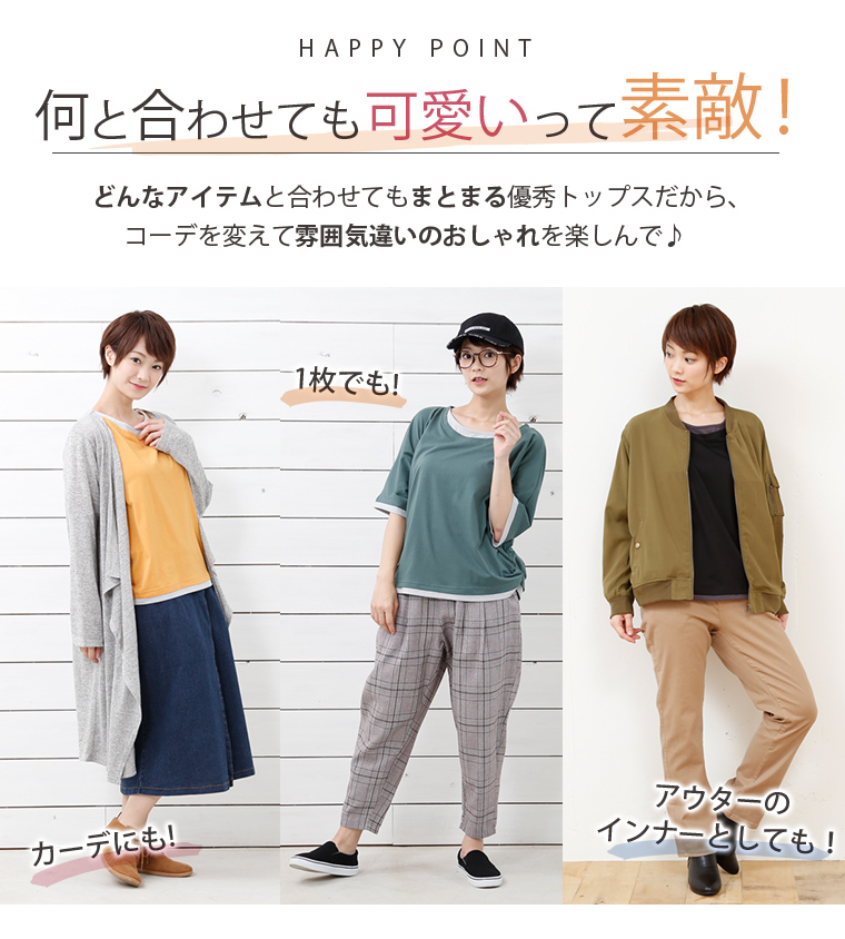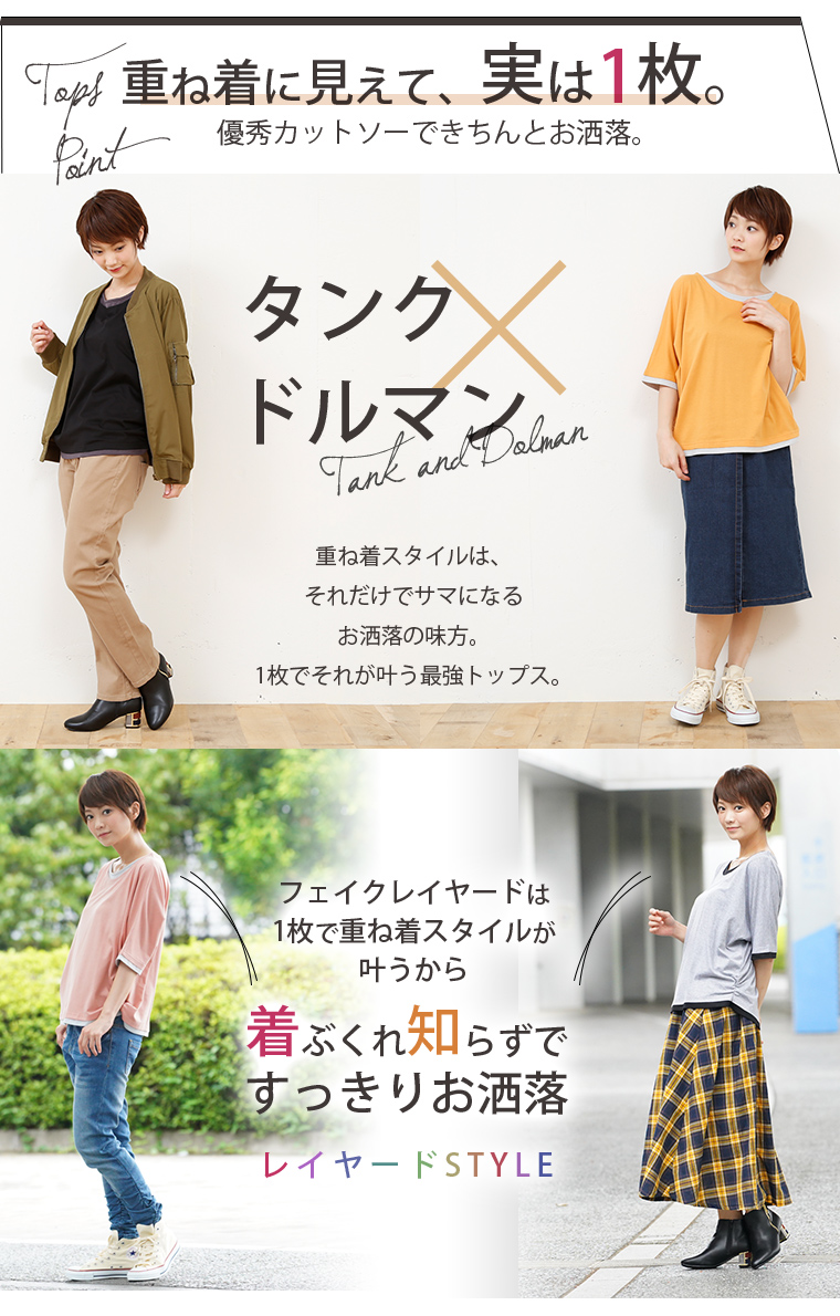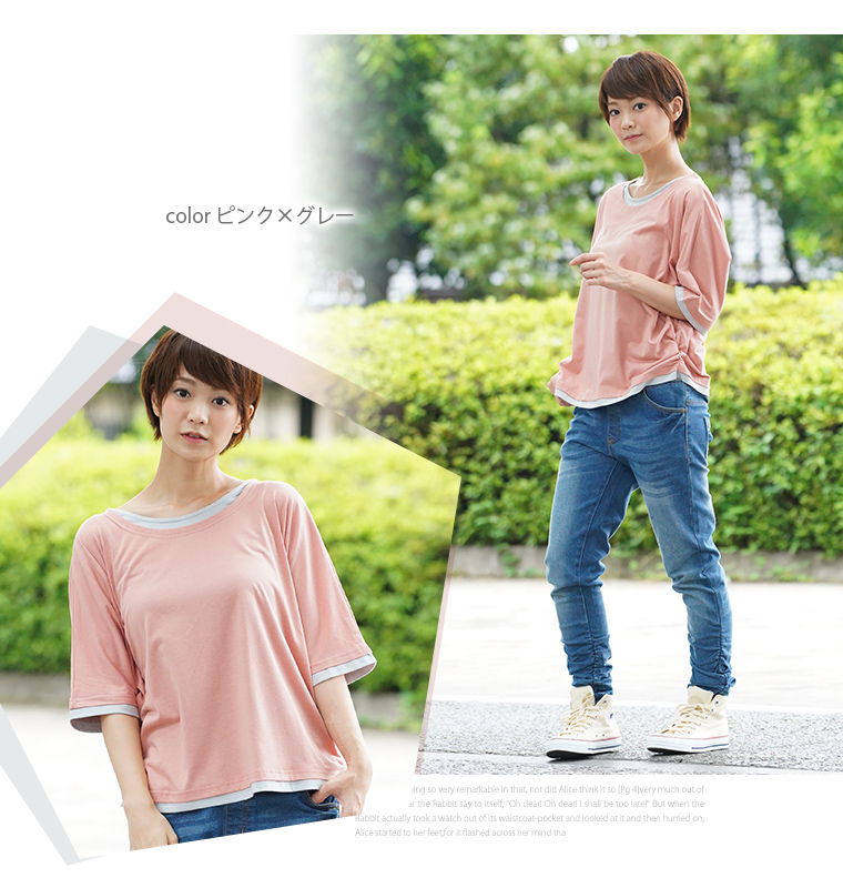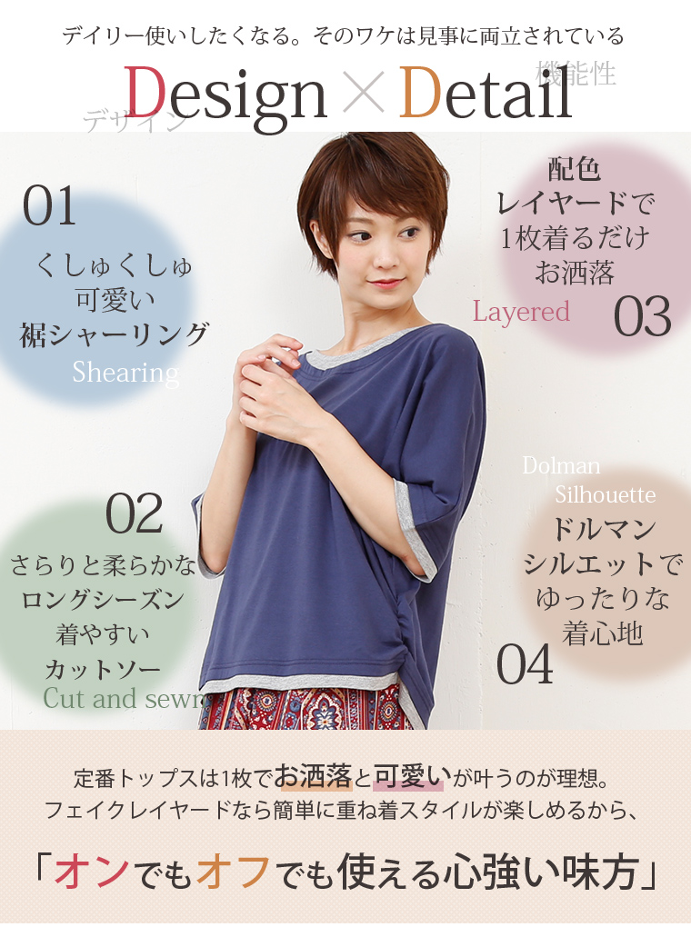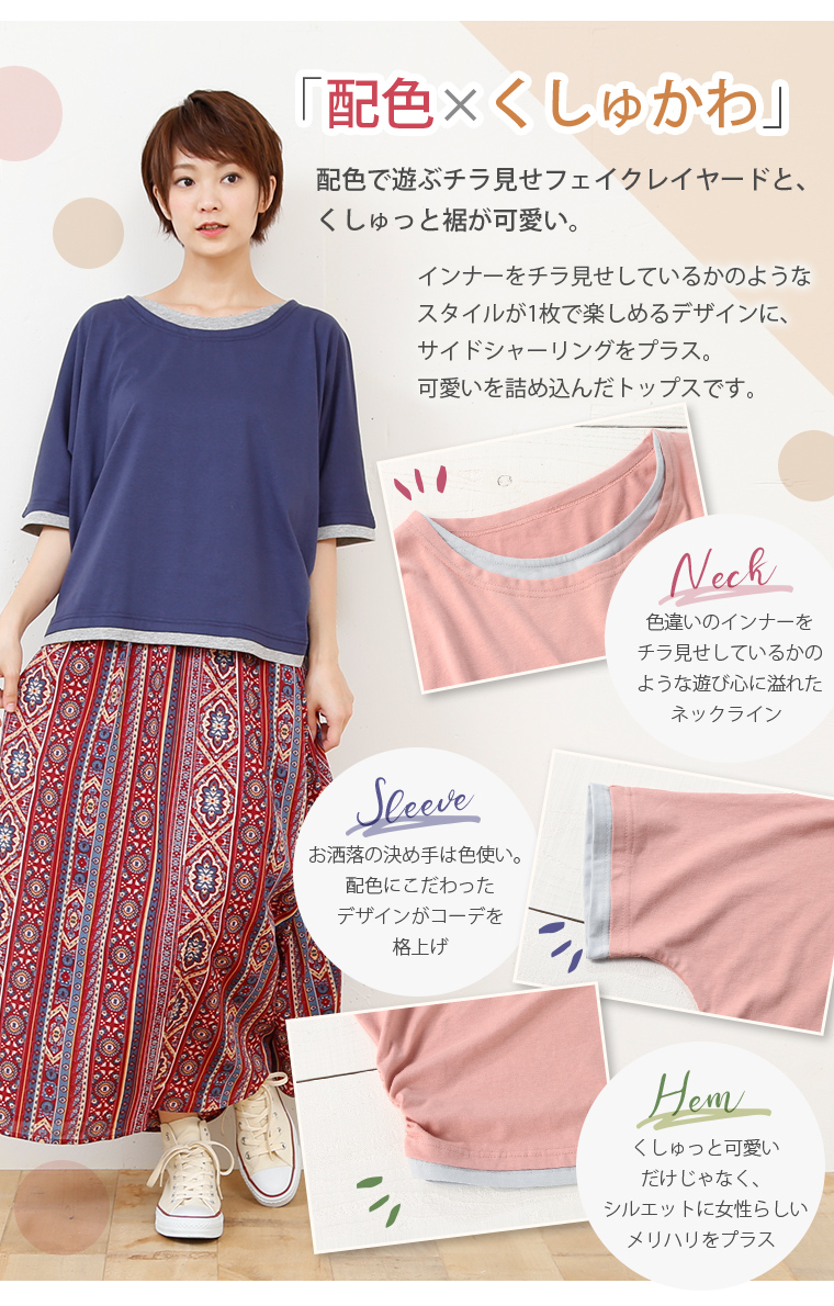 フェイクレイヤードで着るだけお洒落!くしゅっと裾とゆるっとフォルムが可愛い♪