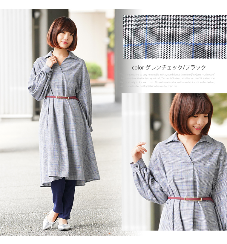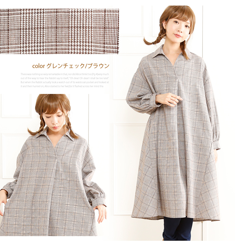 無地とグレンチェックから選べる♪ゆるっとオーバーサイズに着るのが可愛いワンピです