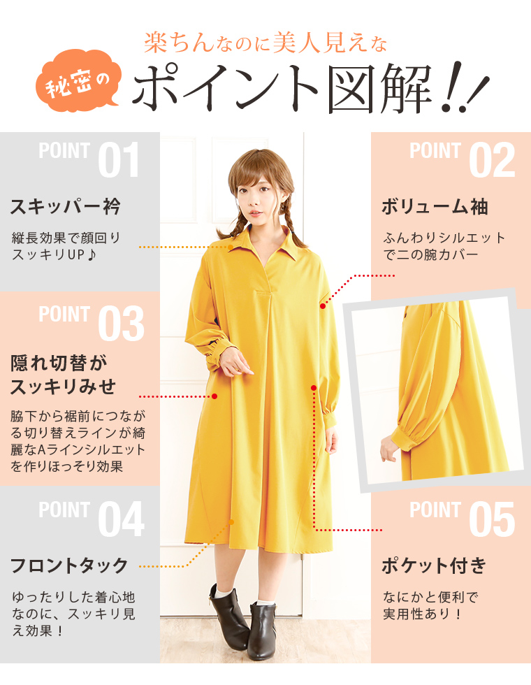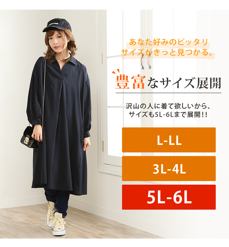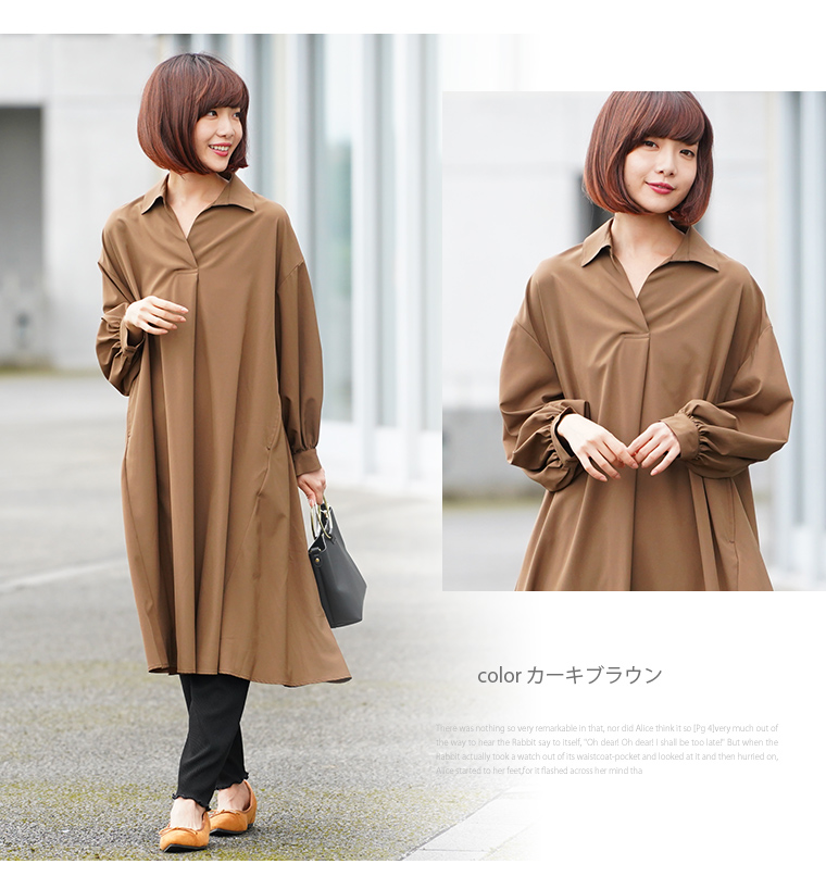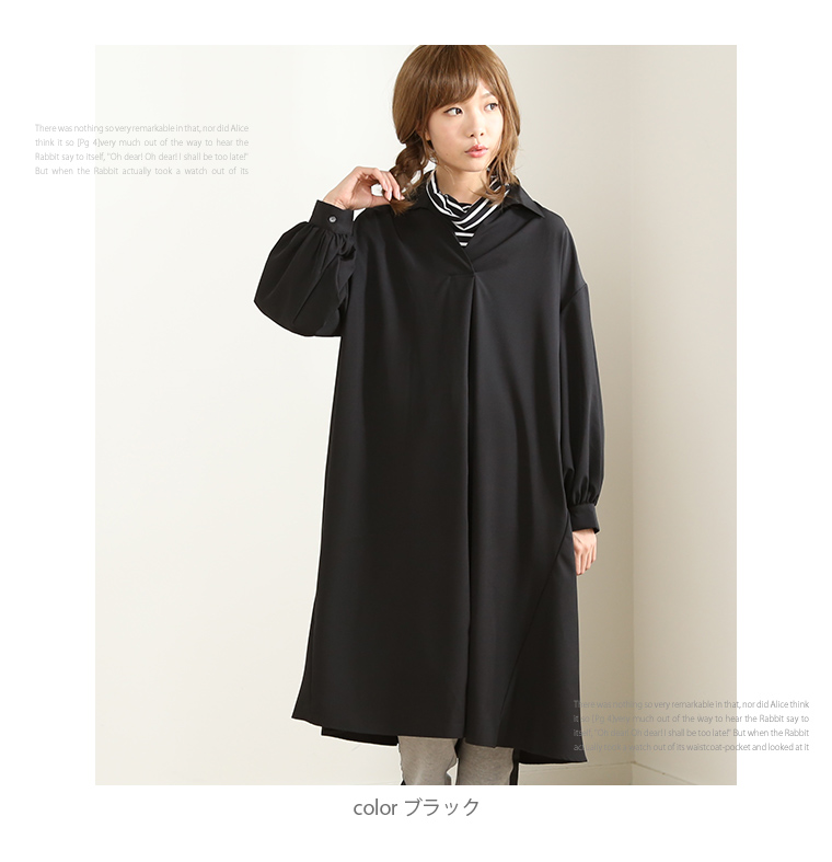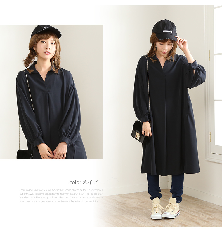 トレンド感のあるスキッパーデザインで首周りすっきり!ビックシルエットシャツワンピ