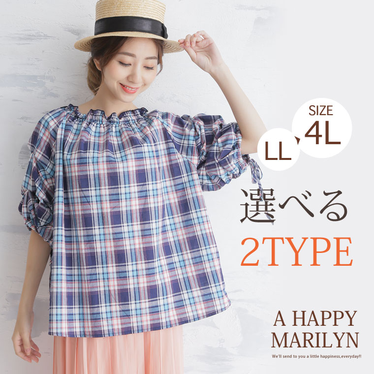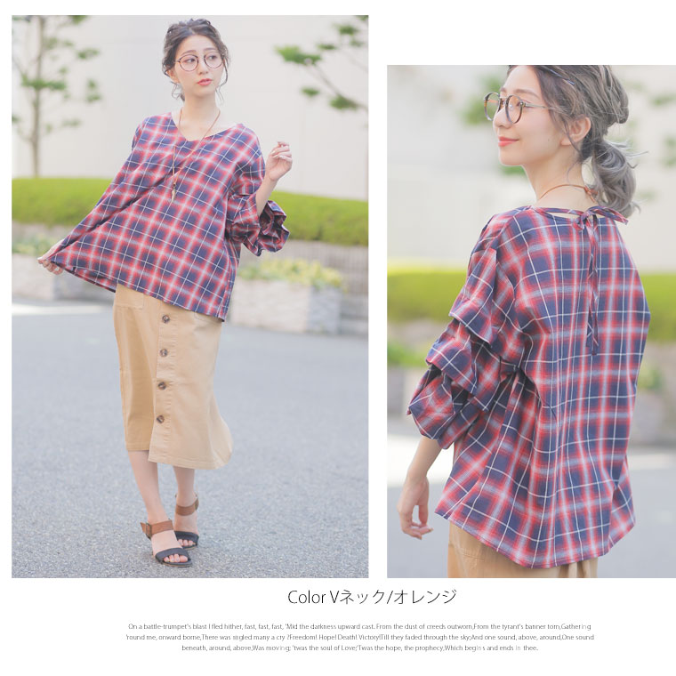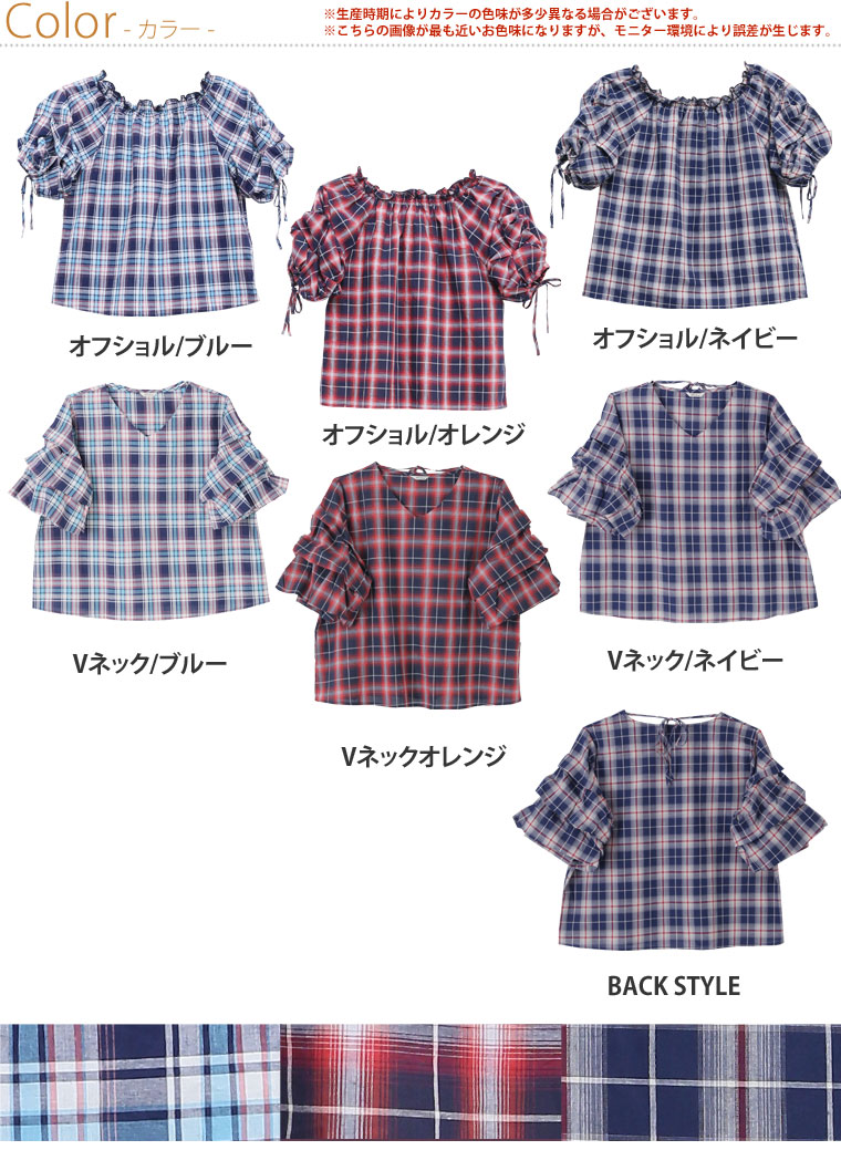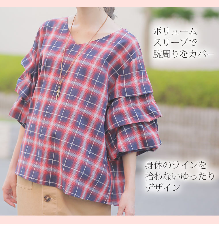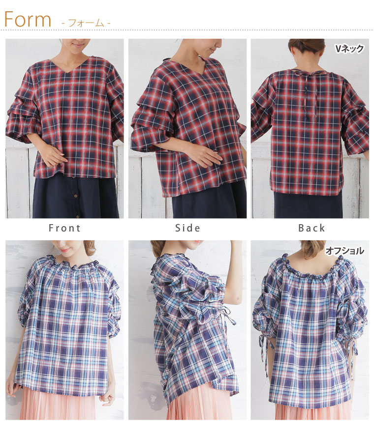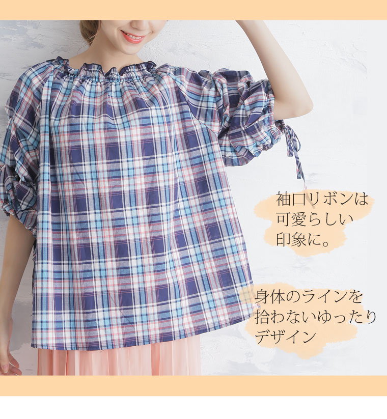 2タイプから選べるナチュラルコットンのチェック柄ブラウス