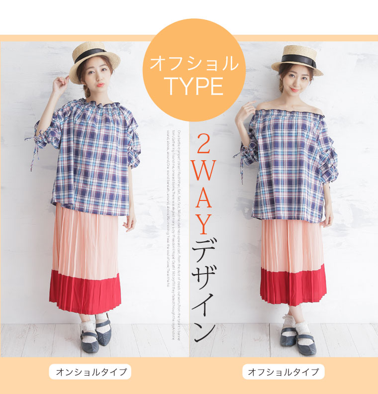 スッキリVネックと、ふんわりオフショルダーの2タイプをご用意しました。