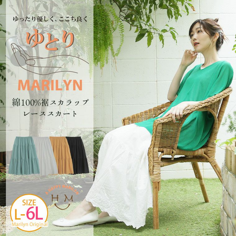 ゆとりMARILYN 綿100%レースロングスカート