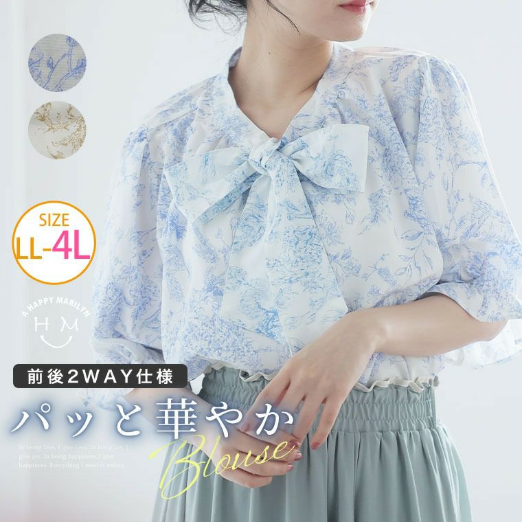 前後2WAY リボンタイが大人可愛いシフォンブラウス