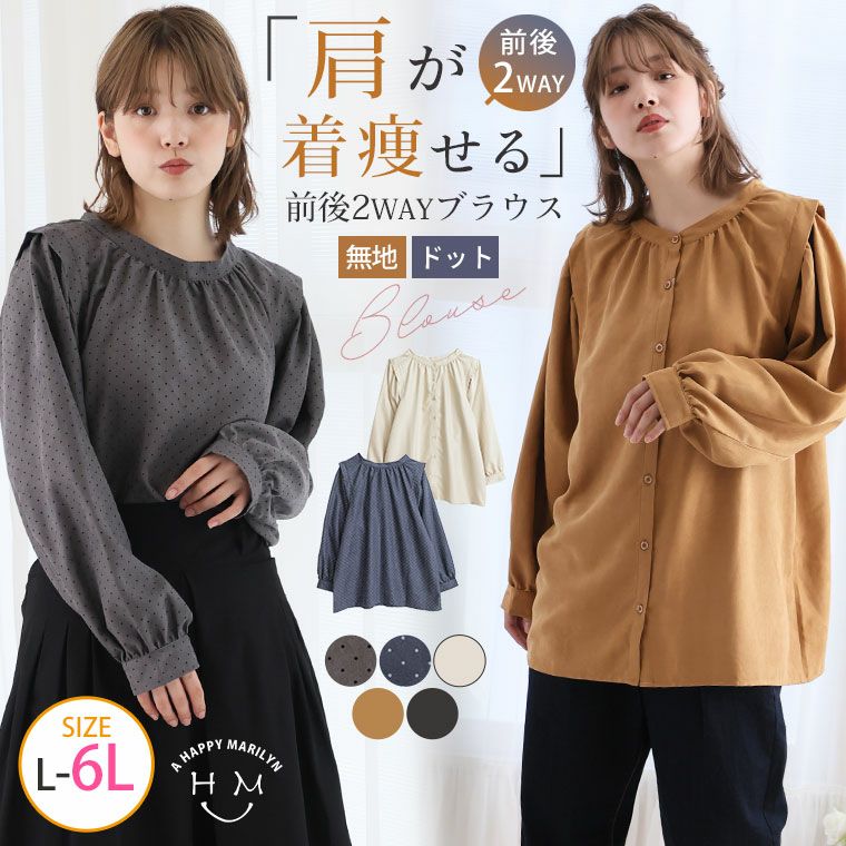 無地とドットから選べる!肩が着痩せる前後2WAYブラウス
