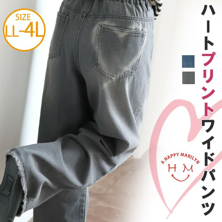 バックポケットにハートプリントが可愛いセミワイドパンツ