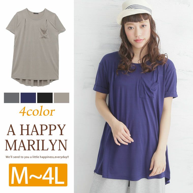 ゆったり着こなす大人のラフスタイル。折り返し半袖バックタック入りチュニック