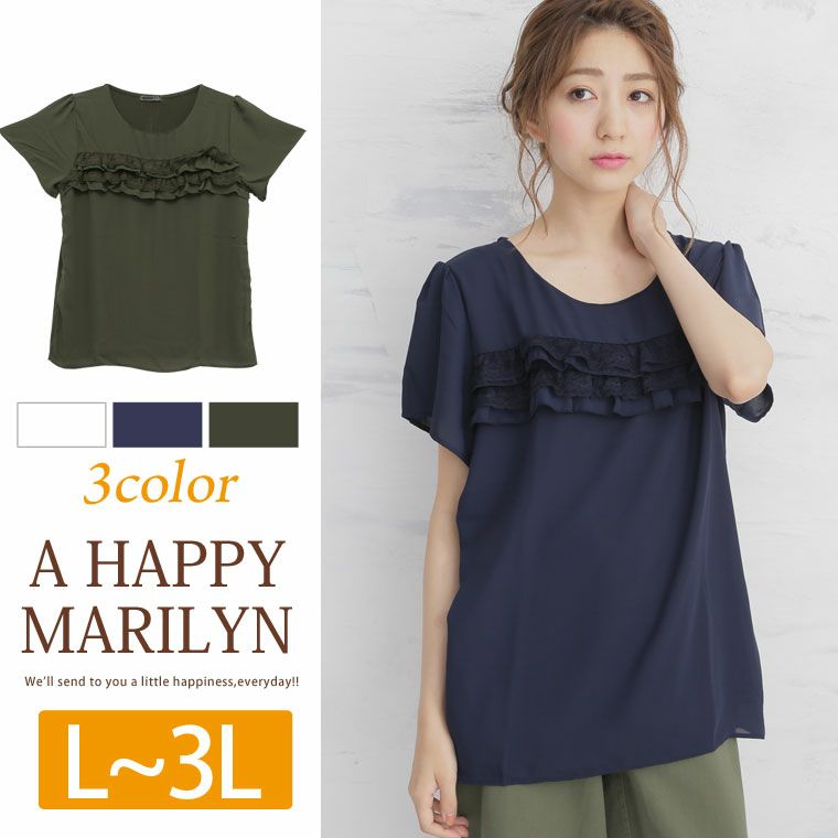 胸元段フリルがアクセントに。ジョーゼット×レースデザイントップス