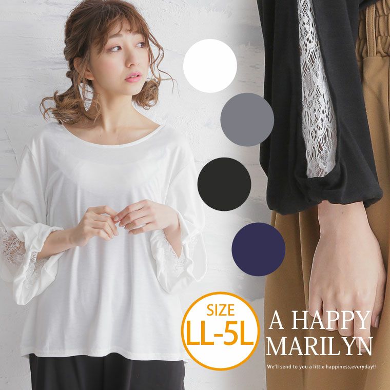 ふんわりバルーンスリーブで二の腕カバー◎袖レース切り替えトップス