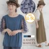 華やかな袖ドットチュールがアクセント。五分袖プルオーバー