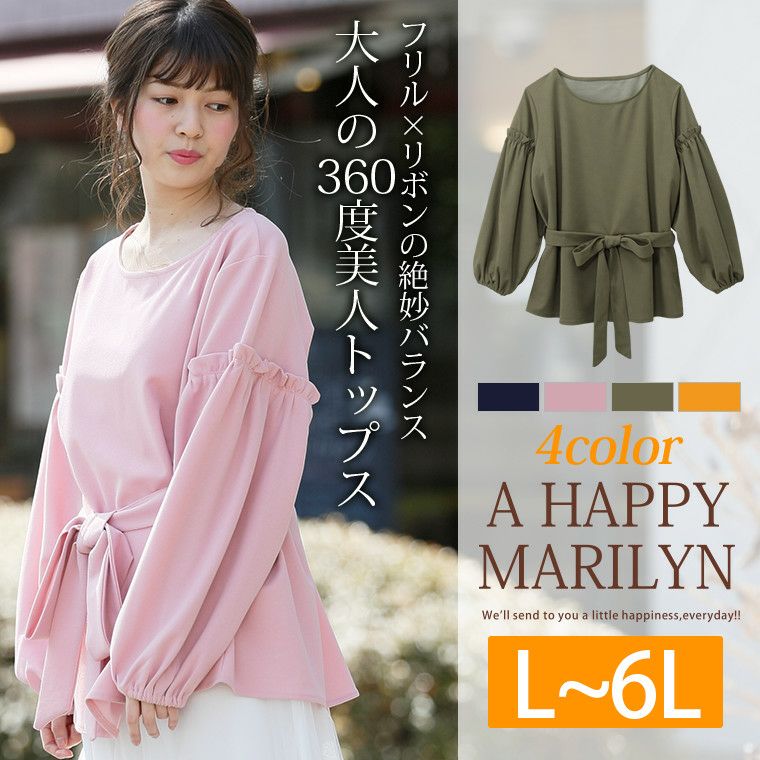 袖コンシャスが今年らしい♪ベルトリボンで表情の変化を楽しむ大人のクルーネックブラウス。