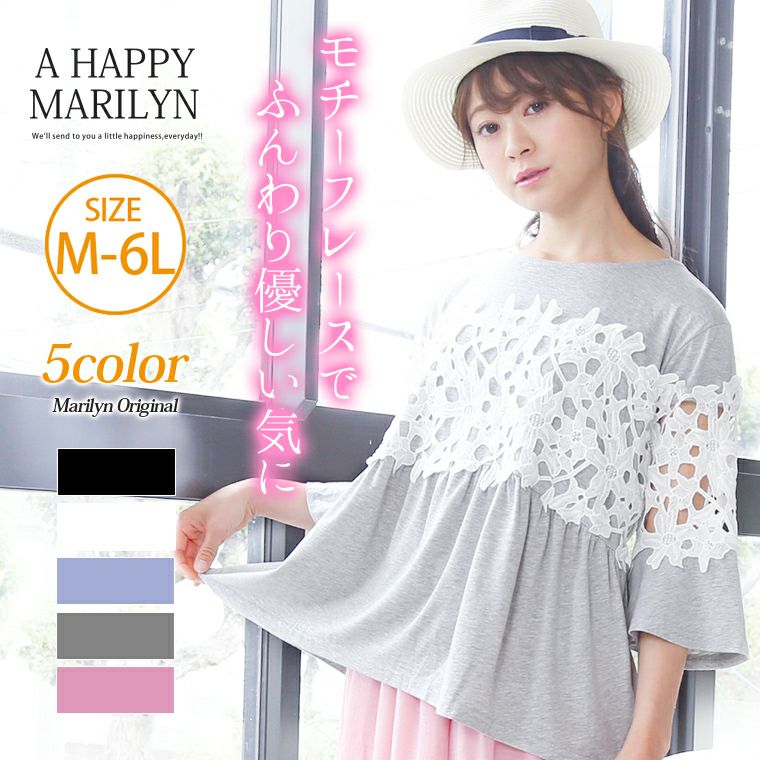 胸元ギャザーでシルエットふんわり♪モチーフレースが女性らしいトップスです