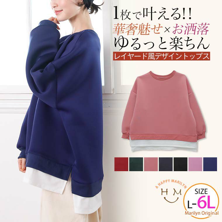 1枚着るだけでお洒落魅せ!重ね着風レイヤードデザインカットソー