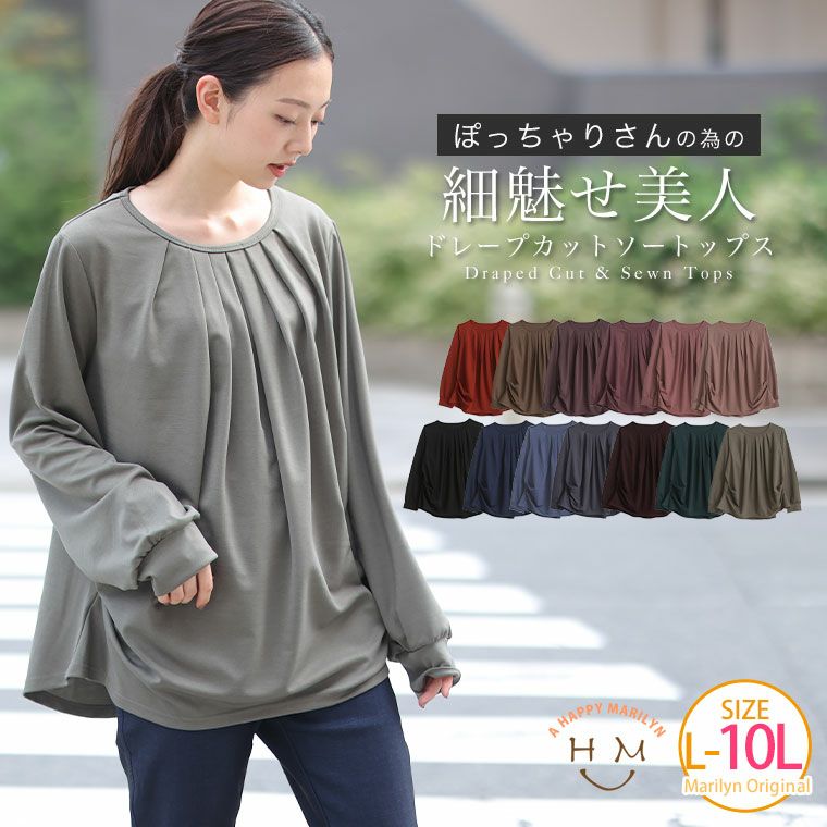 オリジナル カットソー プルオーバー LL 3L 4L 5L 6L 7L 8L 9L 10L 秋 秋物 秋服 冬 冬物 冬服 ぽっちゃり ゆったり お腹 胸周り ぽっちゃりさんの為の細魅せ 美人 ドレープ ポンチ トップス | 大きいサイズの通販ならハッピーマリリン