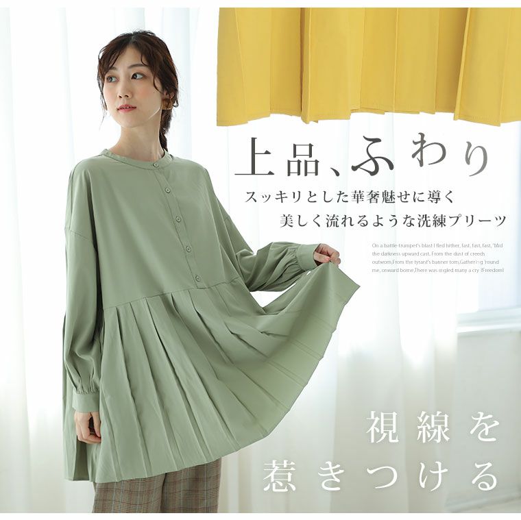 美人プリーツで360度きれい魅せバンドカラーチュニック