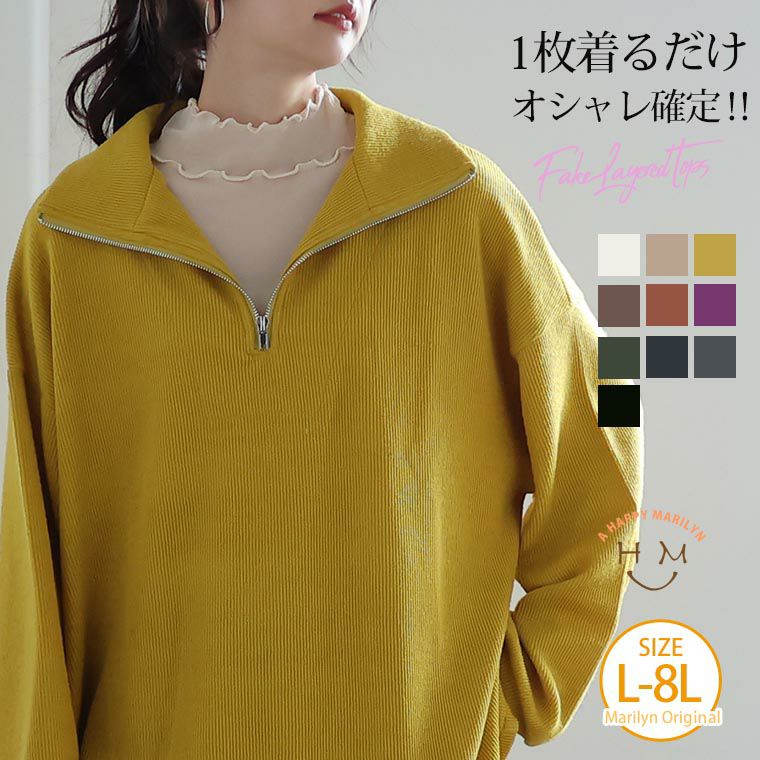 トレンドのシアートップスとハーフジップニットを 重ねたコーデが1着で完成!