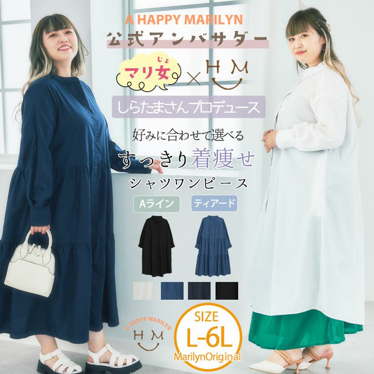 【アンバサダーしらたまさんコラボ】Aラインとティアードから選べるロングシャツワンピース