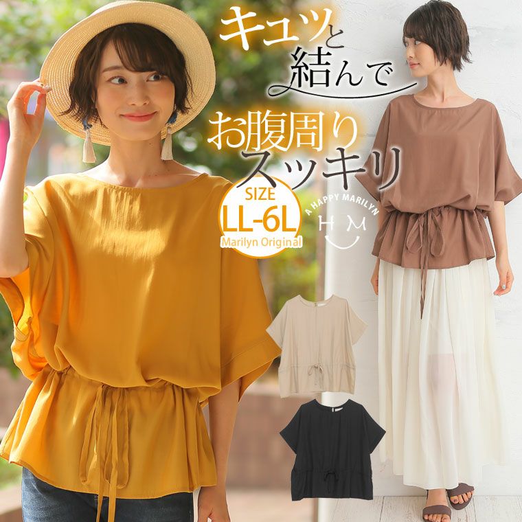 ウエストドロストデザインでふんわりカバー◎半袖プルオーバー
