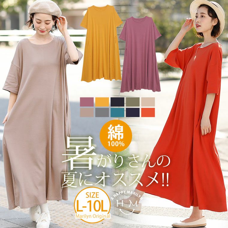 柔らかな綿100%生地でナチュラルに着こなす。Aラインワンピース