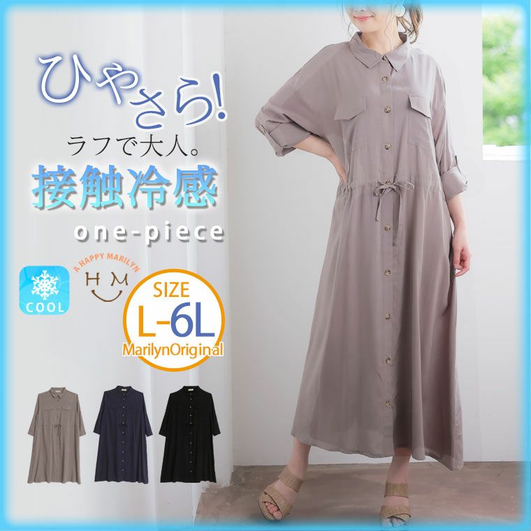 ひんやりさらり、快適な着心地 ミリタリーロングシャツワンピース