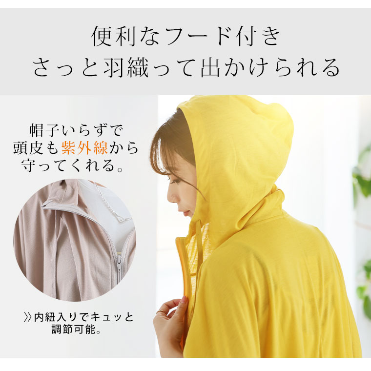 便利なフード付きだから帽子いらずで紫外線から守ってくれる