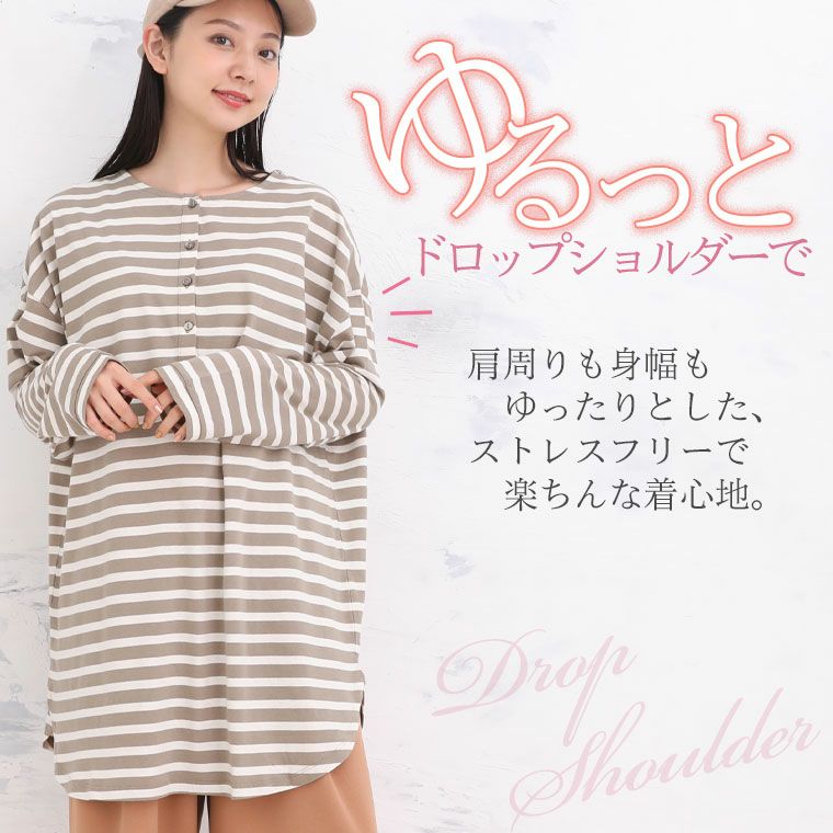ドロップショルダー ゆったりナチュラルデザインでストレスフリー