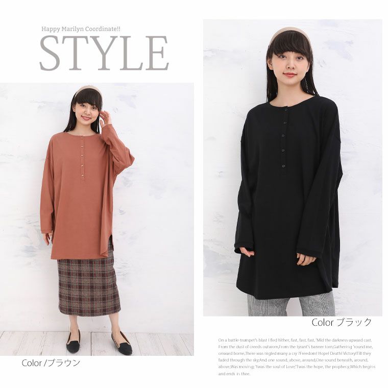カットソー LL 3L 4L 5L 6L 秋 秋物 秋冬 ぽっちゃり ゆったり 綿 コットン 天然素材 ナチュラル カジュアル 【オーガニックコットン100%】2way ヘンリーネック 長袖 Tシャツ | 大きいサイズの通販ならハッピーマリリン