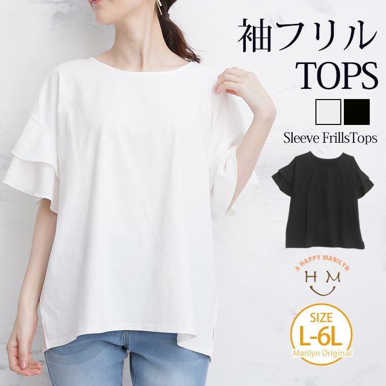 異素材使い袖フリルトップス シルケット風素材