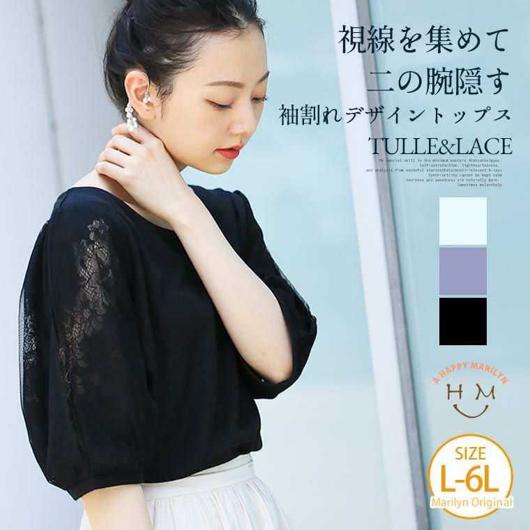 視線を集めて二の腕隠す 袖割れデザイントップス TULLE&LACE