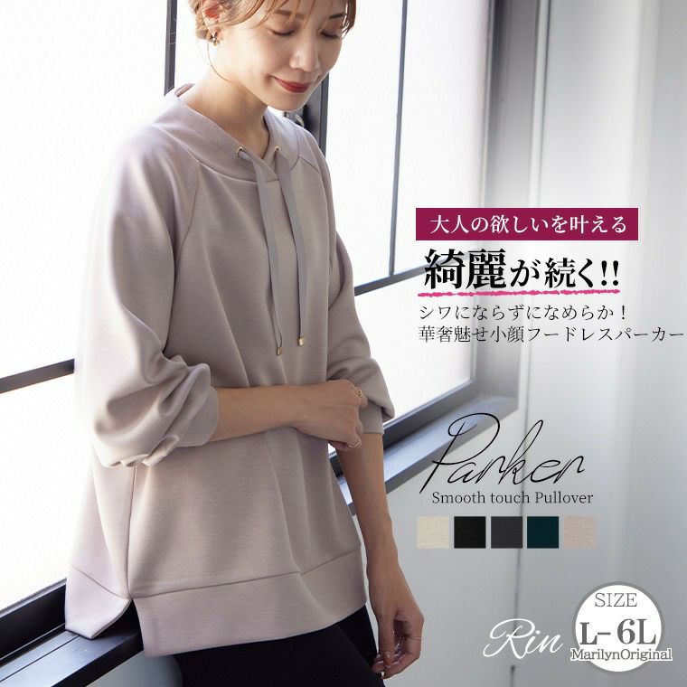 綺麗を叶える!上品華奢魅せ小顔美人なフードレスダンボールパーカー