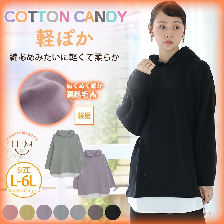 暖かくって楽に着られる 2枚重ねなくて良い裾レイヤード風パーカー