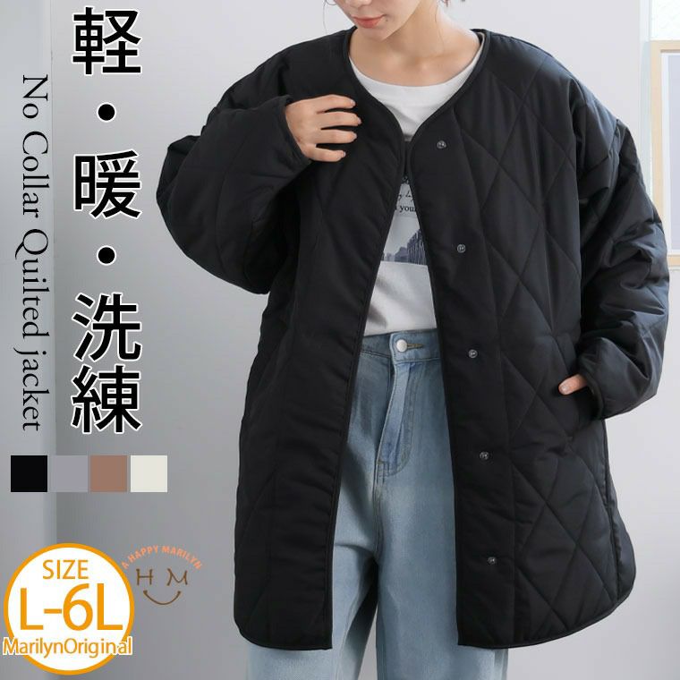 中綿キルティングノーカラージャケット