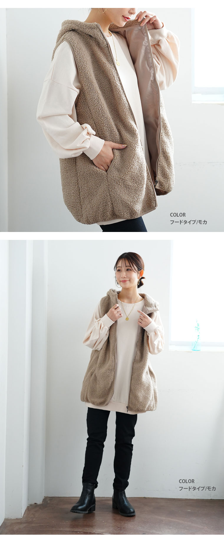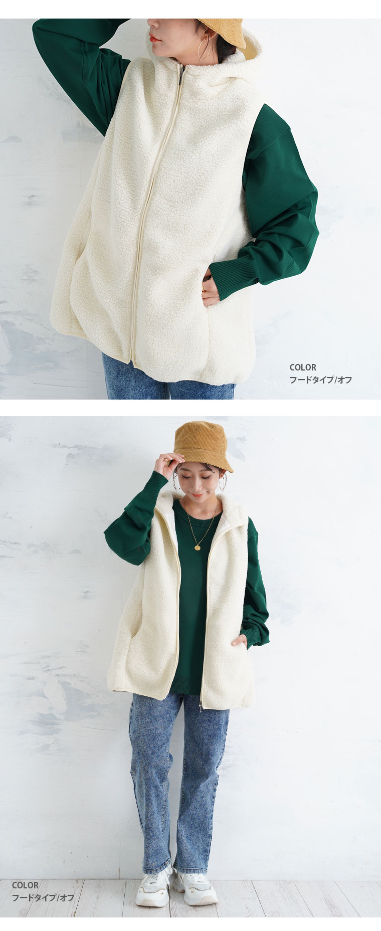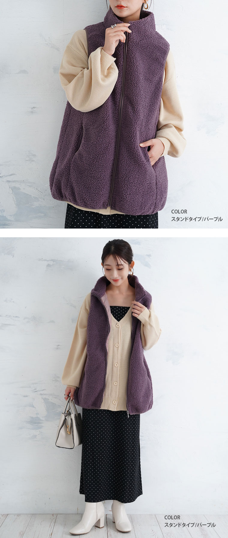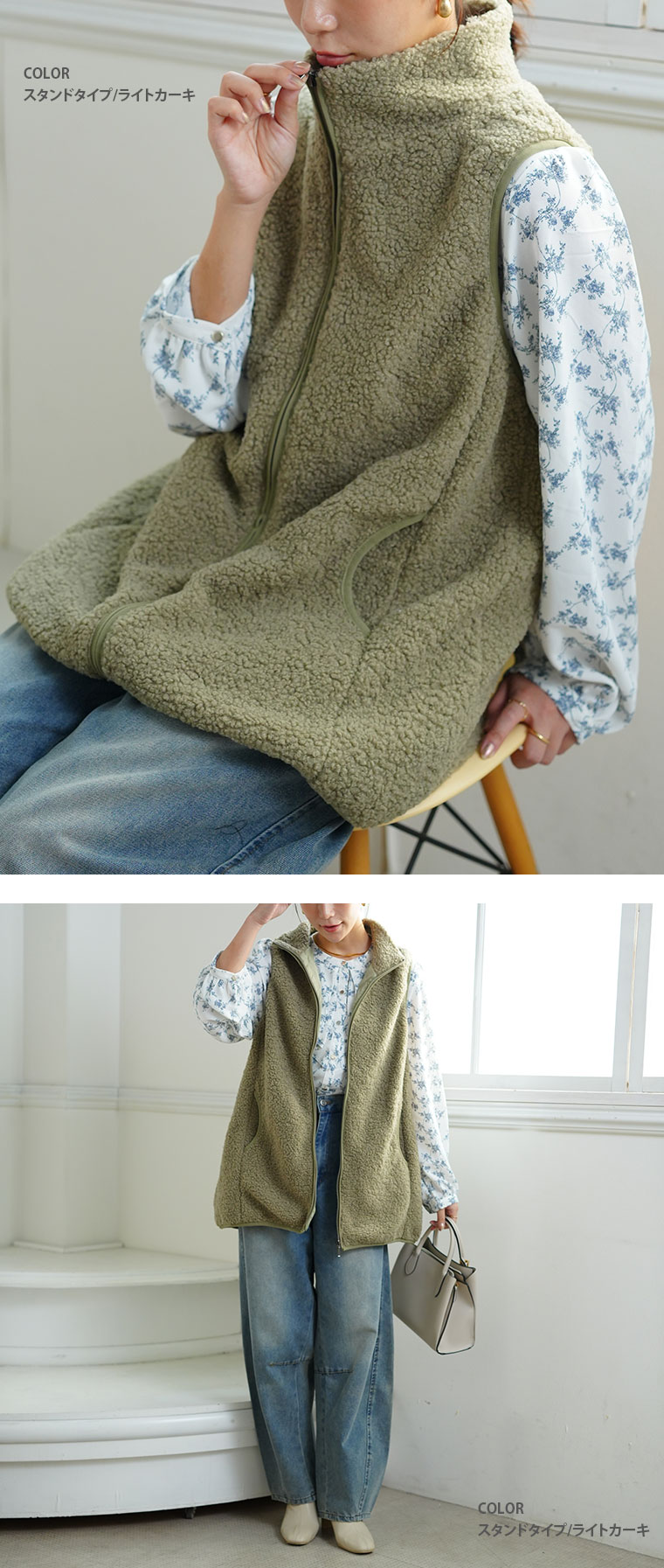 Aラインで余裕でZIPアップ!なにかと頼れるふわもこボアベスト