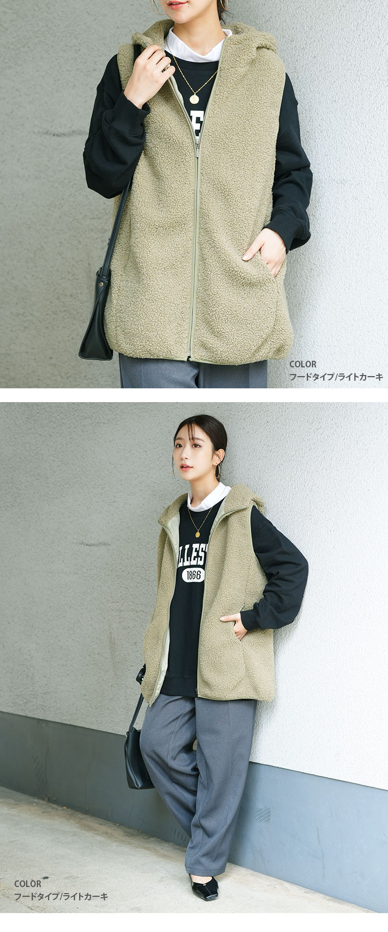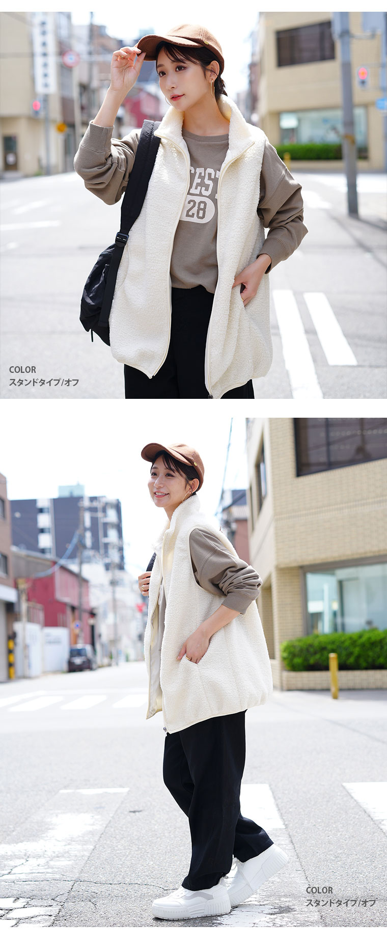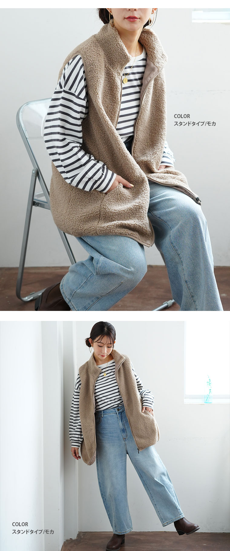 Aラインで余裕でZIPアップ!なにかと頼れるふわもこボアベスト