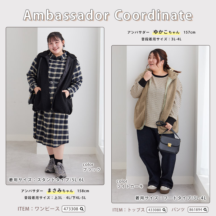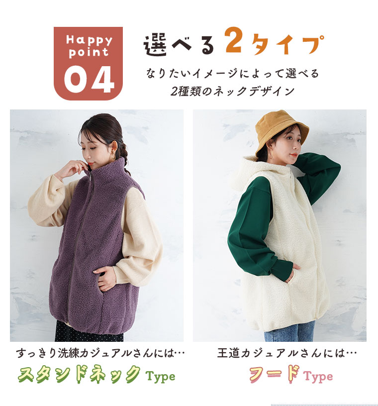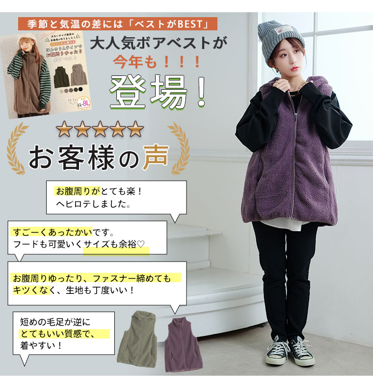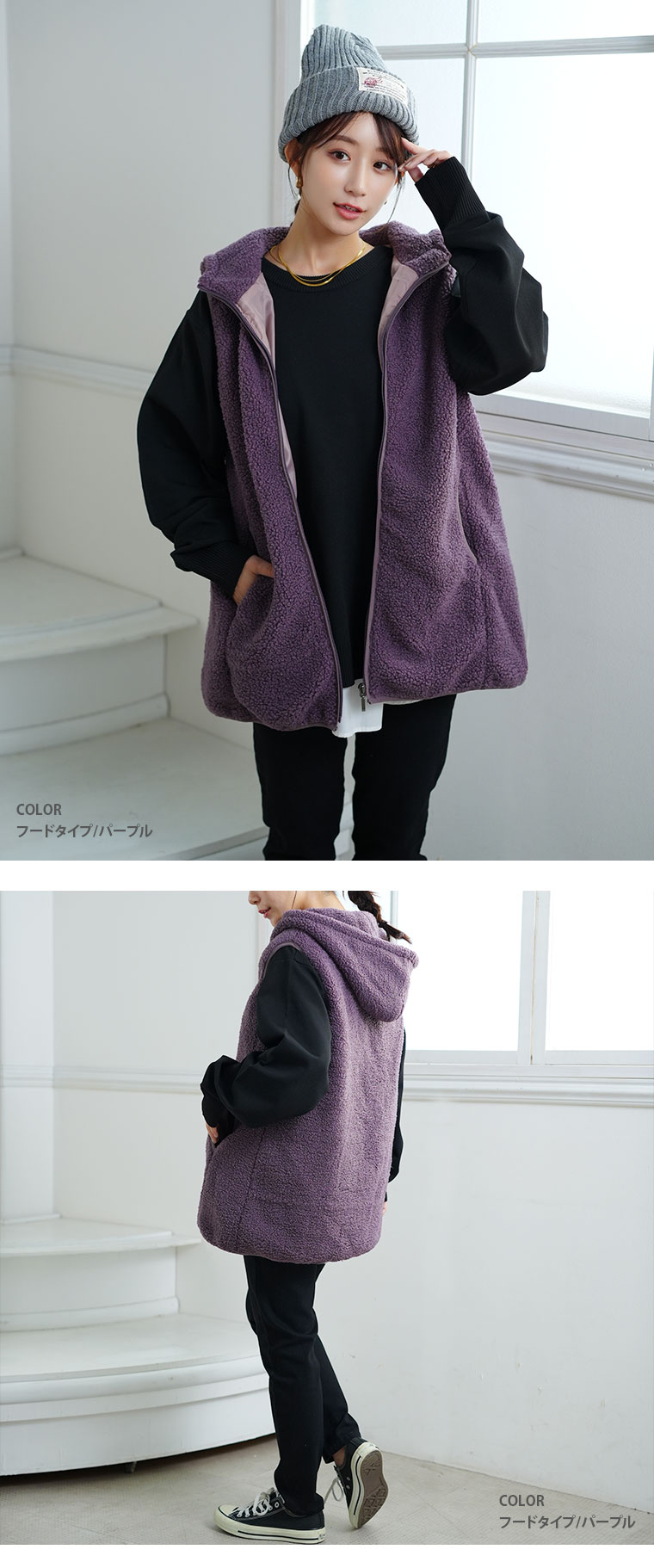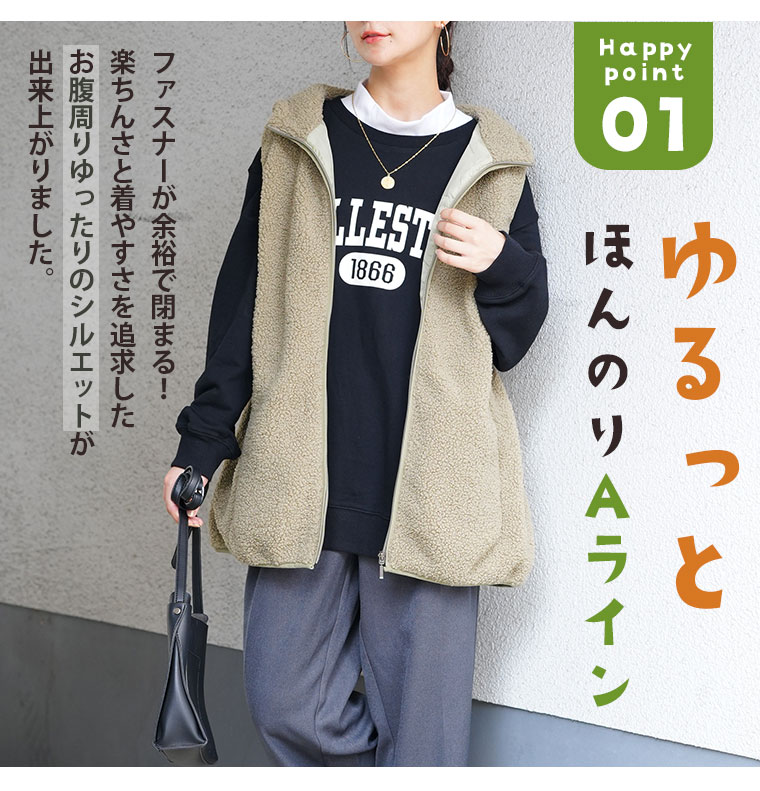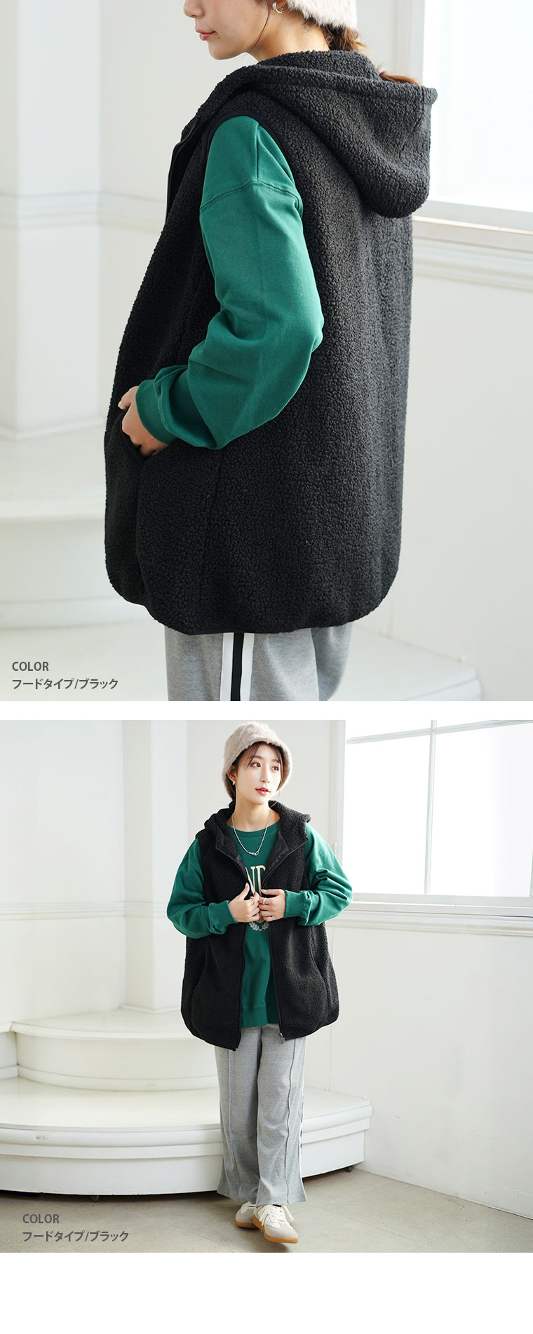 Aラインで余裕でZIPアップ!なにかと頼れるふわもこボアベスト