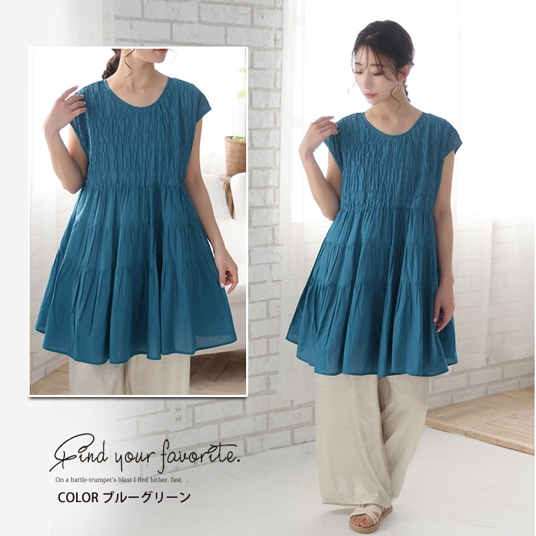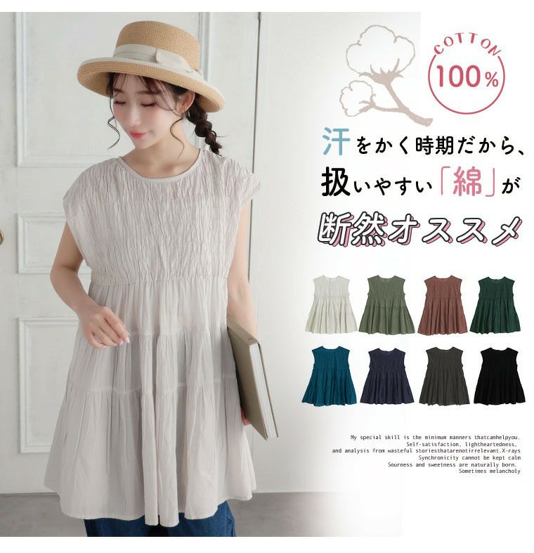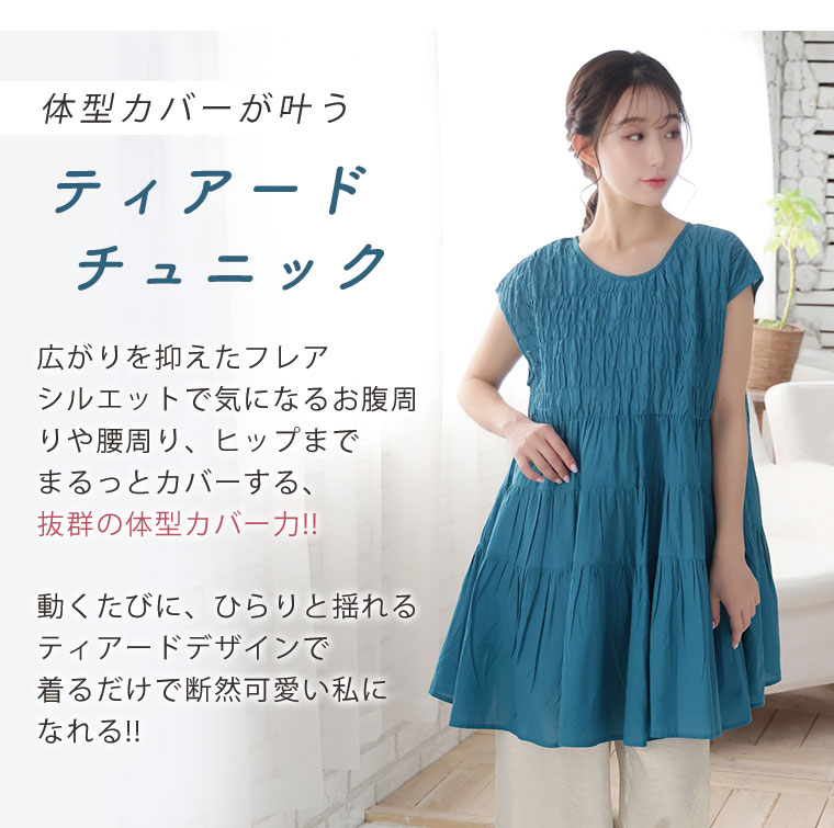 さらっと軽い♪こだわり綿100%のティアードチュニック