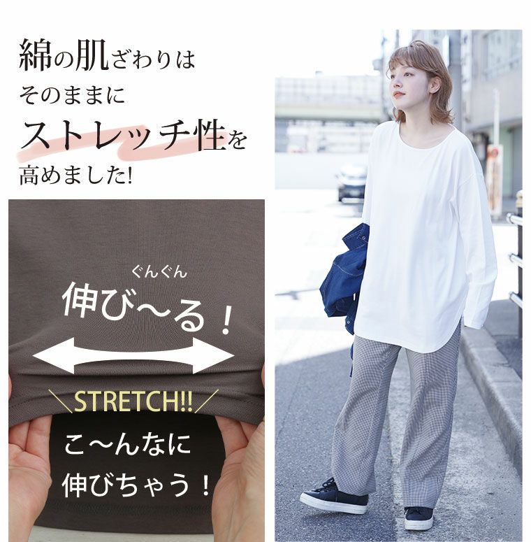 肌ざわり自慢おシルケット長袖Tシャツ