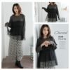 ほどよい暖かさが丁度いい【ちょい温シリーズ】 チュール切替え リブ トップス