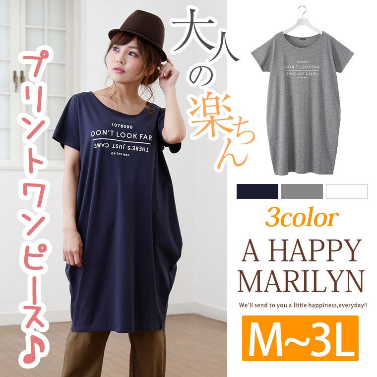 ゆったりコクーンシルエットで体型カバーに◎!小さめロゴプリントが可愛いカットソーワンピです。