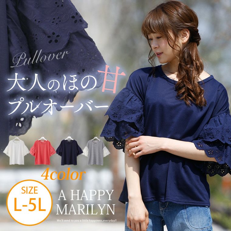 スカラップラインのコットンレースが可愛い♪天竺素材でこれからの季節にもピッタリのゆったりプルオーバーです。