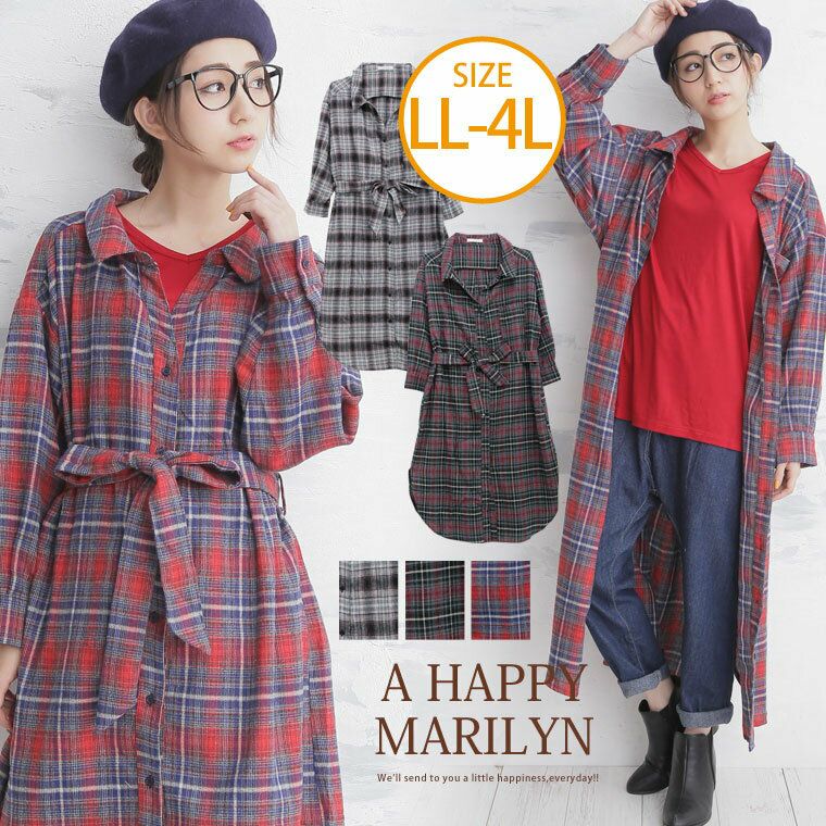 ワンピ シャツワンピ 秋ワンピース 秋ワンピ LL 3L 4L 秋 秋物 秋服 冬 冬物 冬服 ぽっちゃり かわいい おしゃれ ネルチェック スキッパー風 長袖 シャツワンピース | 大きいサイズの通販ならハッピーマリリン