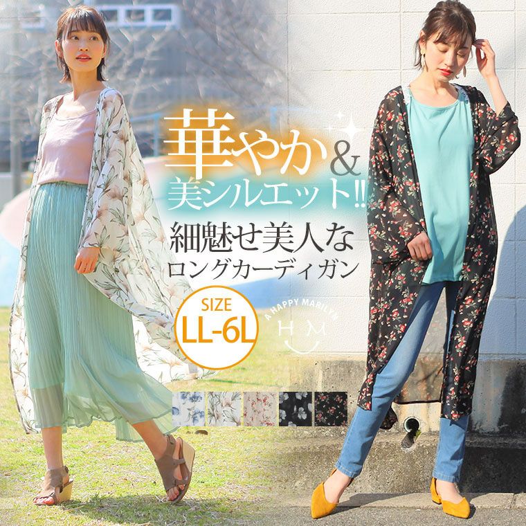 3. 大きいサイズ 選べる花柄 シフォン 長袖 ロングカーディガン【メール便可1】 | 大きいサイズの通販ならハッピーマリリン