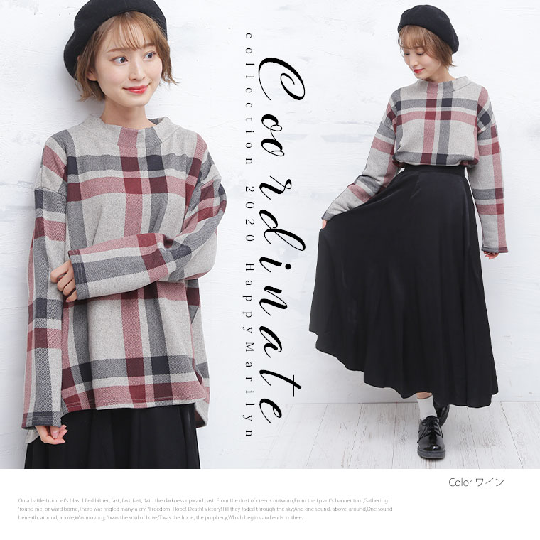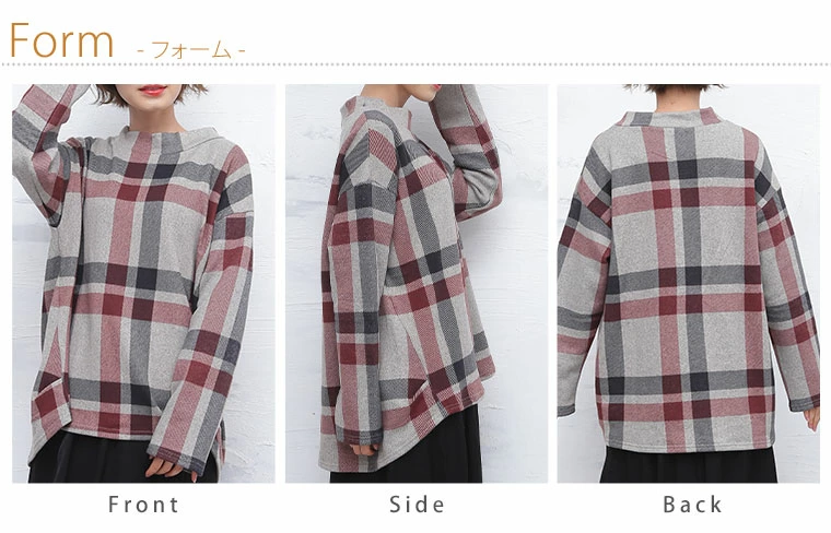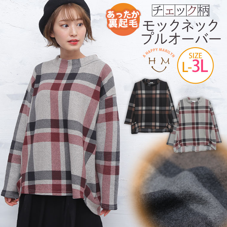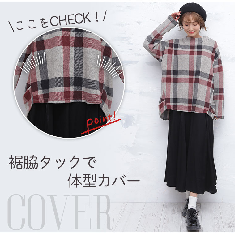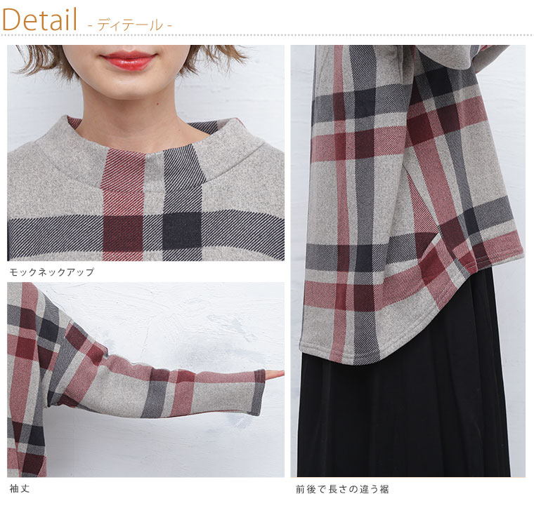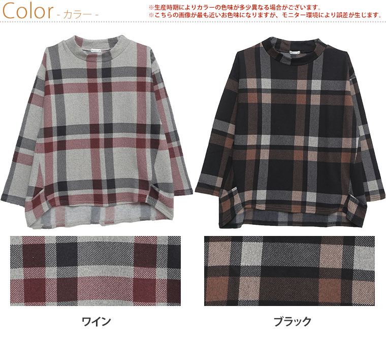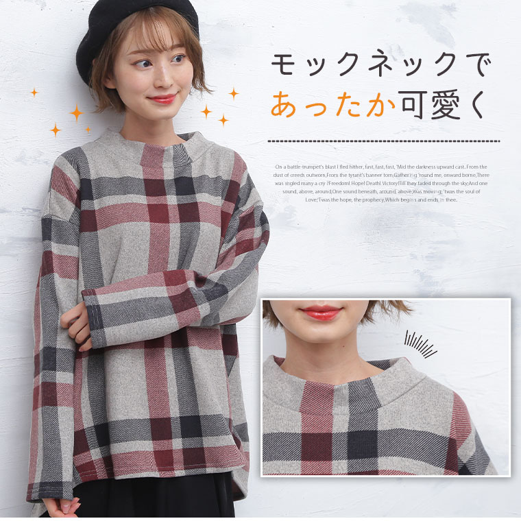 モックネックがかわいい チェック柄プルオーバー