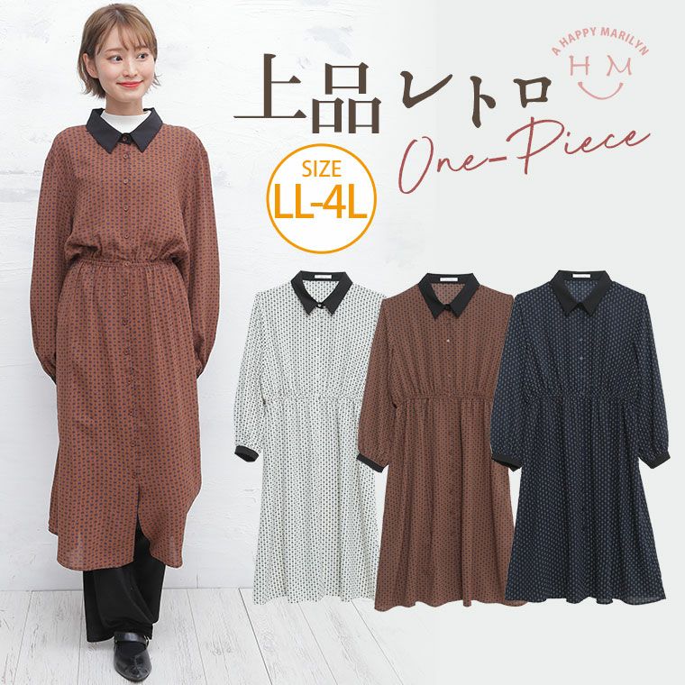 カフスが上品な大人の小紋柄ワンピース
