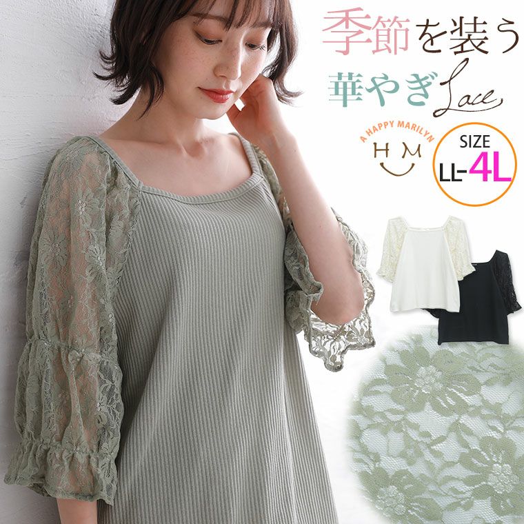 上品な透け感が春らしい袖レースブラウス