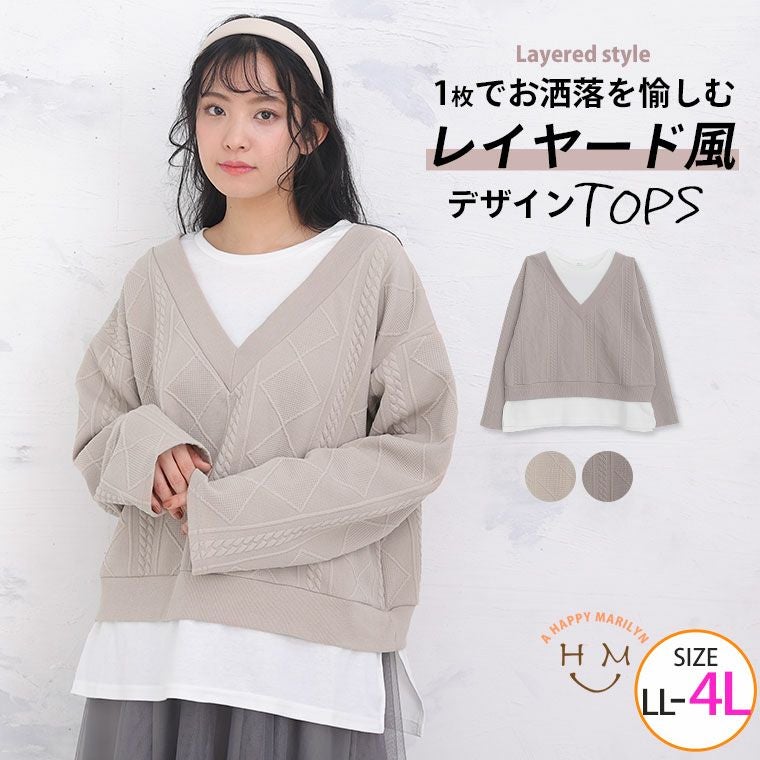 レイヤード風デザインで1枚でお洒落なコーディネートが完成