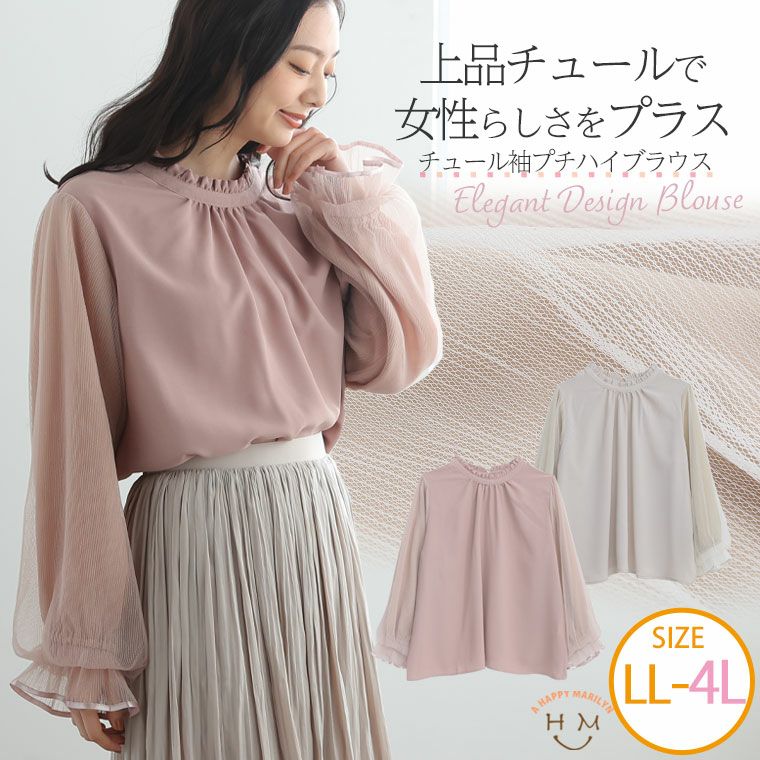 ぽわんっと可愛い チュール袖プチハイブラウス
