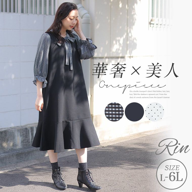 ワンピ デザインワンピ LL 3L 4L 5L 6L 春 春物 春服 ぽっちゃり ゆったり リン 花柄 小花 水玉 ドット ギンガム ギンガムチェック 太もも お尻 腰周り 長袖 Rin 袖切り替え 美人 ポンチ マーメイドワンピース | 大きいサイズの通販ならハッピーマリリン